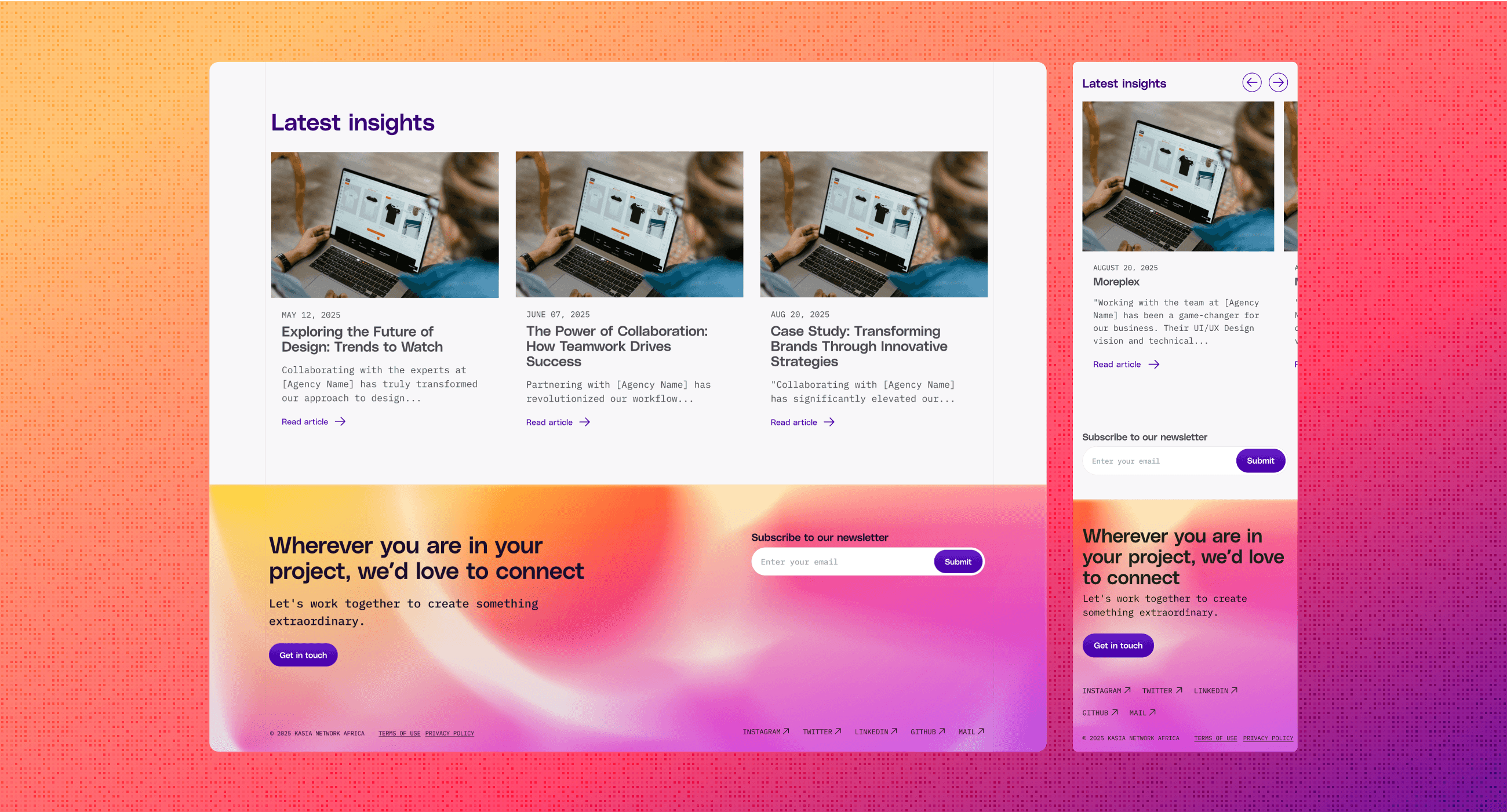 I designed a responsive website for Kasia Network Africa that reflects their modern, tech-forward approach to digital solutions. The site features a sleek, contemporary interface, intuitive navigation, and bold visual elements that showcase Kasia’s expertise in innovation and user experience.