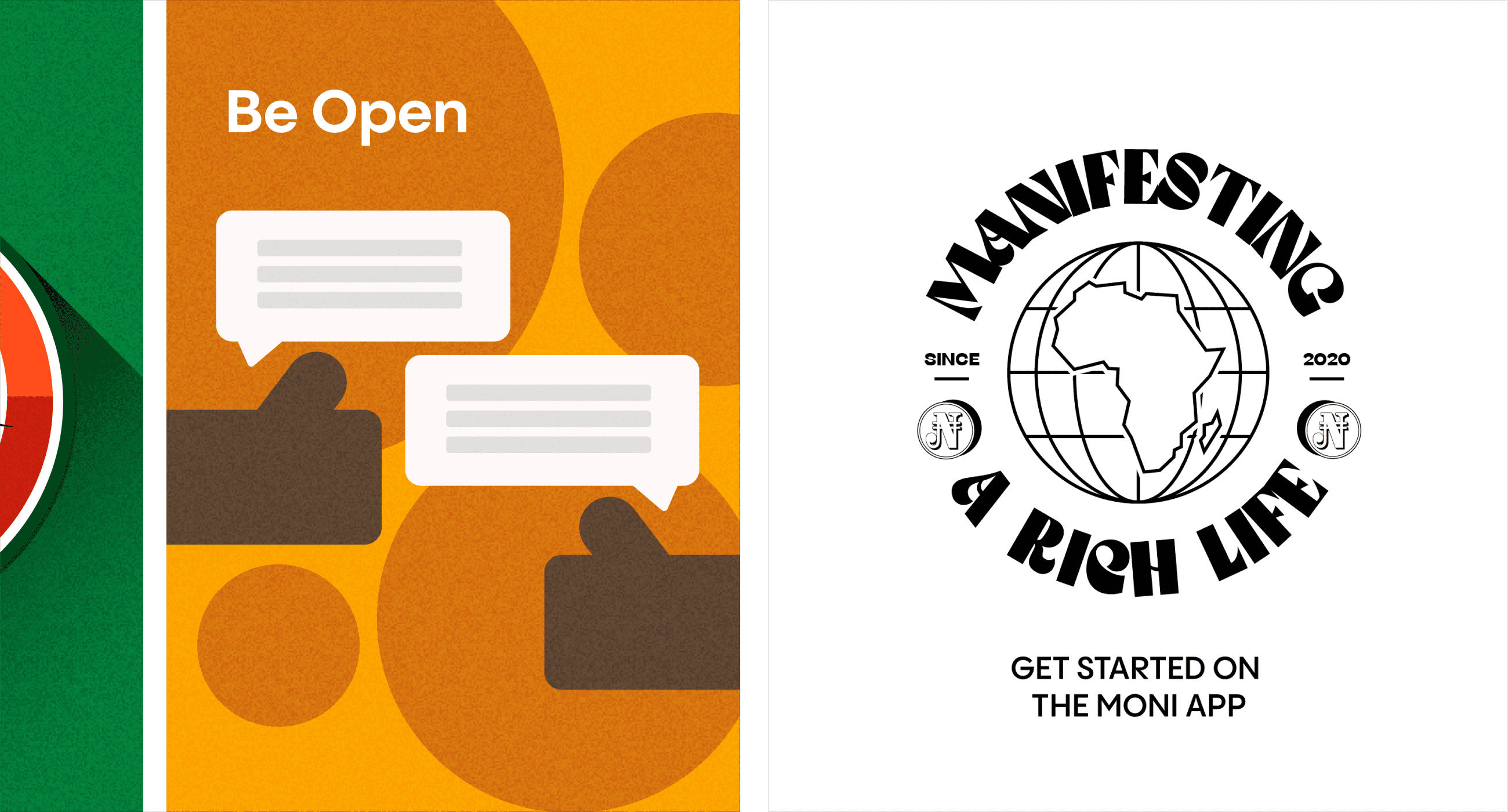 Moni Africa set out to create a brand identity that authentically represents African communities without relying on stereotypical patterns and bold colors. By redesigning the logo with circles to symbolize trust and unity, and using local-inspired elements like thick black lines, monochrome colors, and financial motifs, I developed a relatable and trustworthy brand that received positive feedback and notable recognition.